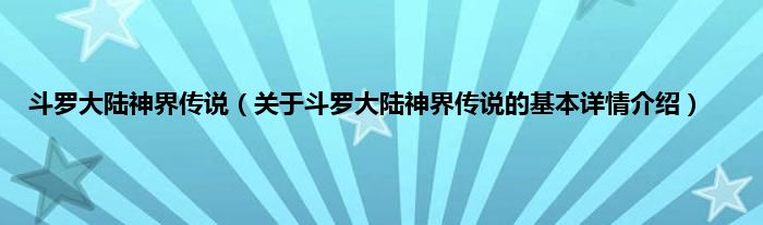 本文关于斗罗大陆神界传说的基本详情介绍就讲解完毕,希望对大家有所帮助。