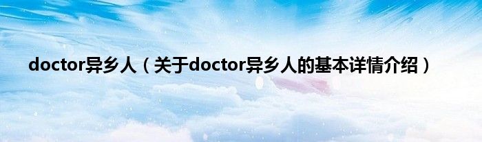 本文关于doctor异乡人的基本详情介绍就讲解完毕,希望对大家有所帮助。