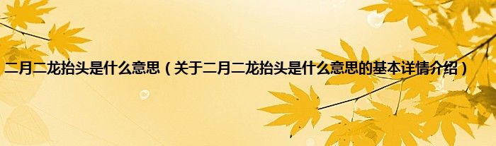 本文关于二月二龙抬头是什么意思的基本详情介绍就讲解完毕,希望对大家有所帮助。