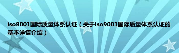 本文关于iso9001国际质量体系认证的基本详情介绍就讲解完毕,希望对大家有所帮助。