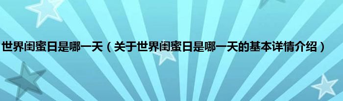 本文关于世界闺蜜日是哪一天的基本详情介绍就讲解完毕,希望对大家有所帮助。