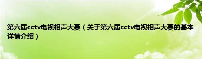 本文关于第六届cctv电视相声大赛的基本详情介绍就讲解完毕,希望对大家有所帮助。