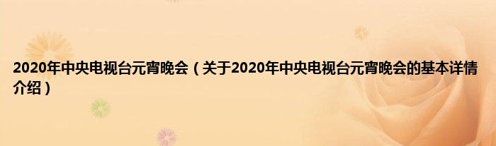 本文关于2020年中央电视台元宵晚会的基本详情介绍就讲解完毕,希望对大家有所帮助。