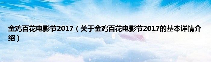 本文关于金鸡百花电影节2017的基本详情介绍就讲解完毕,希望对大家有所帮助。