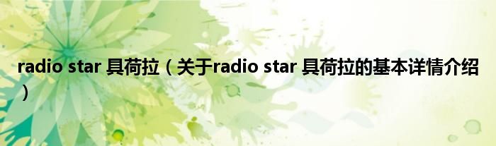 radio star 具荷拉(关于radio star 具荷拉的基本详情介绍)