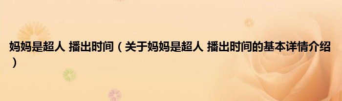 本文关于妈妈是超人 播出时间的基本详情介绍就讲解完毕,希望对大家有所帮助。