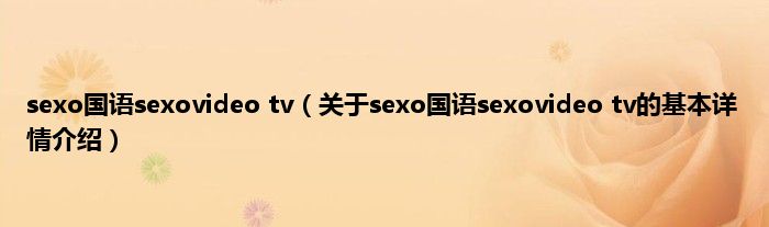 本文关于sexo国语sexovideo tv的基本详情介绍就讲解完毕,希望对大家有所帮助。
