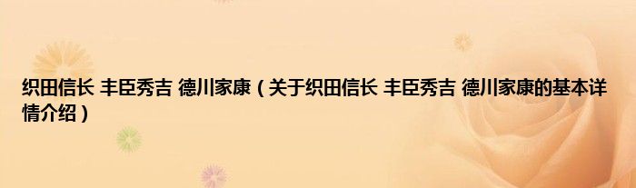 织田信长 丰臣秀吉 德川家康(关于织田信长 丰臣秀吉 德川家康的基本详情介绍)
