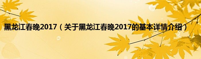 本文关于黑龙江春晚2017的基本详情介绍就讲解完毕,希望对大家有所帮助。
