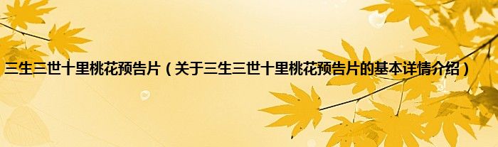 本文关于三生三世十里桃花预告片的基本详情介绍就讲解完毕,希望对大家有所帮助。