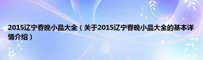 本文关于2015辽宁春晚小品大全的基本详情介绍就讲解完毕,希望对大家有所帮助。