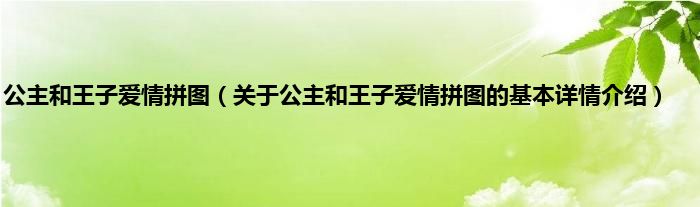 本文关于公主和王子爱情拼图的基本详情介绍就讲解完毕,希望对大家有所帮助。