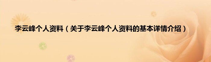 本文关于李云峰个人资料的基本详情介绍就讲解完毕,希望对大家有所帮助。