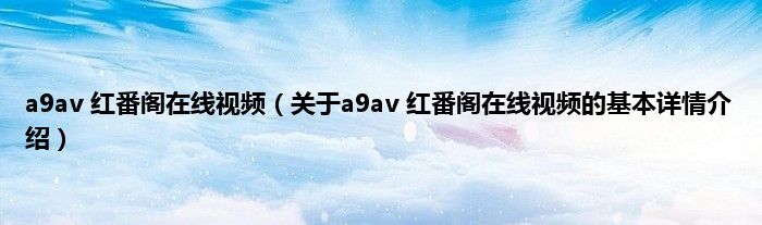 本文关于a9av 红番阁在线视频的基本详情介绍就讲解完毕,希望对大家有所帮助。