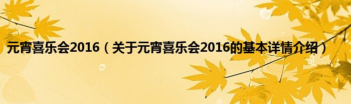 本文关于元宵喜乐会2016的基本详情介绍就讲解完毕,希望对大家有所帮助。