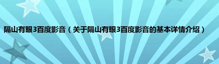 隔山有眼3百度影音(关于隔山有眼3百度影音的基本详情介绍)