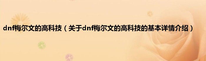本文关于dnf梅尔文的高科技的基本详情介绍就讲解完毕,希望对大家有所帮助。