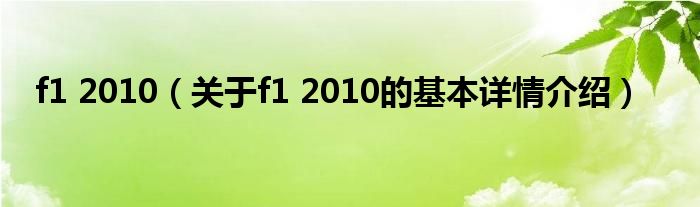 本文关于f1 2010的基本详情介绍就讲解完毕,希望对大家有所帮助。