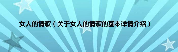 本文关于女人的情歌的基本详情介绍就讲解完毕,希望对大家有所帮助。