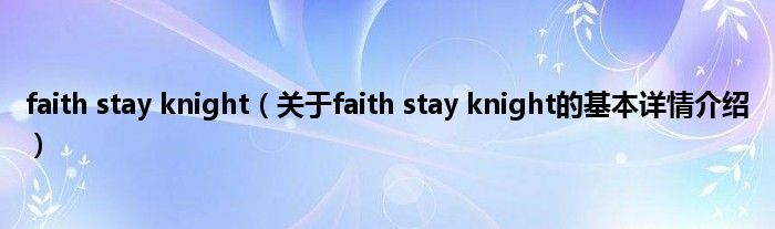 本文关于faith stay knight的基本详情介绍就讲解完毕,希望对大家有所帮助。