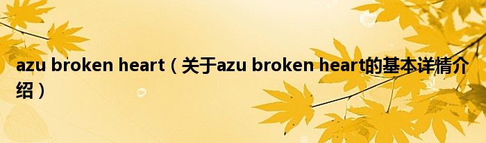本文关于azu broken heart的基本详情介绍就讲解完毕,希望对大家有所帮助。