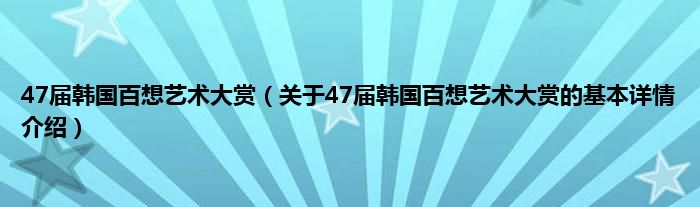 本文关于47届韩国百想艺术大赏的基本详情介绍就讲解完毕,希望对大家有所帮助。