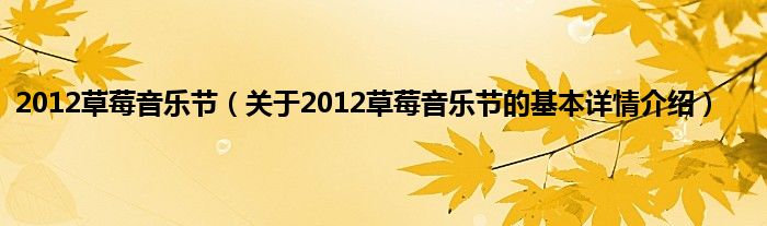 本文关于2012草莓音乐节的基本详情介绍就讲解完毕,希望对大家有所帮助。
