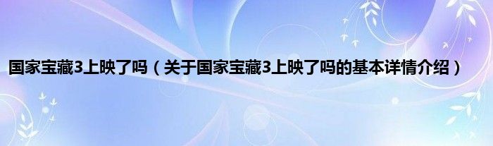 本文关于国家宝藏3上映了吗的基本详情介绍就讲解完毕,希望对大家有所帮助。