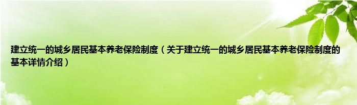 本文关于建立统一的城乡居民基本养老保险制度的基本详情介绍就讲解完毕,希望对大家有所帮助。