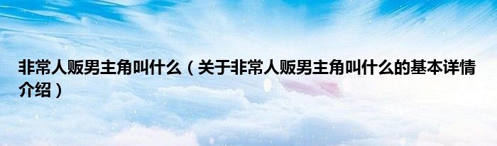 本文关于非常人贩男主角叫什么的基本详情介绍就讲解完毕,希望对大家有所帮助。