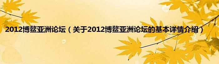 本文关于2012博鳌亚洲论坛的基本详情介绍就讲解完毕,希望对大家有所帮助。