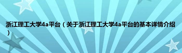 本文关于浙江理工大学4a平台的基本详情介绍就讲解完毕,希望对大家有所帮助。