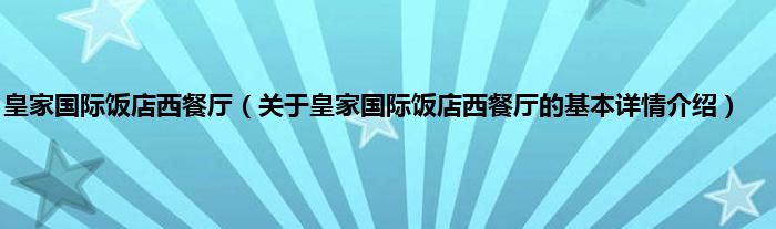 本文关于皇家国际饭店西餐厅的基本详情介绍就讲解完毕,希望对大家有所帮助。