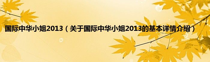 本文关于国际中华小姐2013的基本详情介绍就讲解完毕,希望对大家有所帮助。
