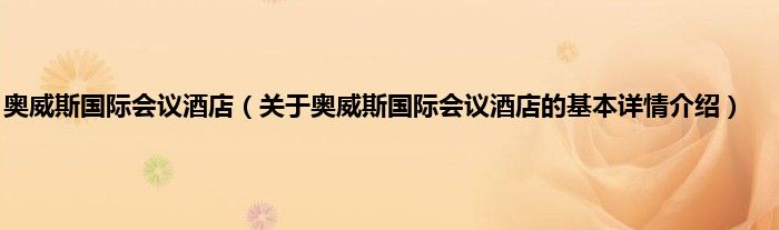 本文关于奥威斯国际会议酒店的基本详情介绍就讲解完毕,希望对大家有所帮助。