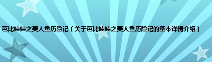 本文关于芭比娃娃之美人鱼历险记的基本详情介绍就讲解完毕,希望对大家有所帮助。