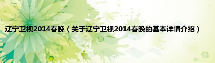 本文关于辽宁卫视2014春晚的基本详情介绍就讲解完毕,希望对大家有所帮助。