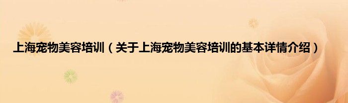 本文关于上海宠物美容培训的基本详情介绍就讲解完毕,希望对大家有所帮助。