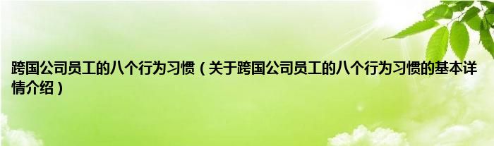 本文关于跨国公司员工的八个行为习惯的基本详情介绍就讲解完毕,希望对大家有所帮助。