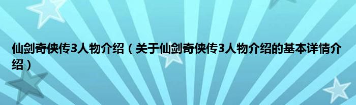 本文关于仙剑奇侠传3人物介绍的基本详情介绍就讲解完毕,希望对大家有所帮助。