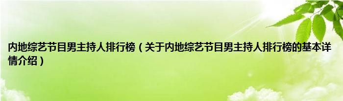 本文关于内地综艺节目男主持人排行榜的基本详情介绍就讲解完毕,希望对大家有所帮助。