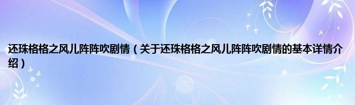 本文关于还珠格格之风儿阵阵吹剧情的基本详情介绍就讲解完毕,希望对大家有所帮助。
