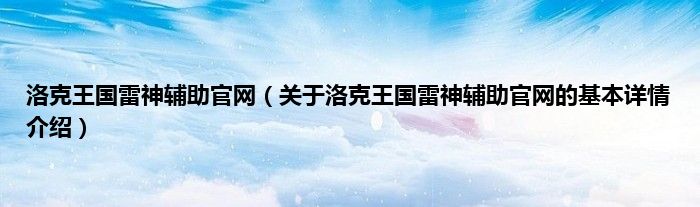 洛克王国雷神辅助官网(关于洛克王国雷神辅助官网的基本详情介绍)