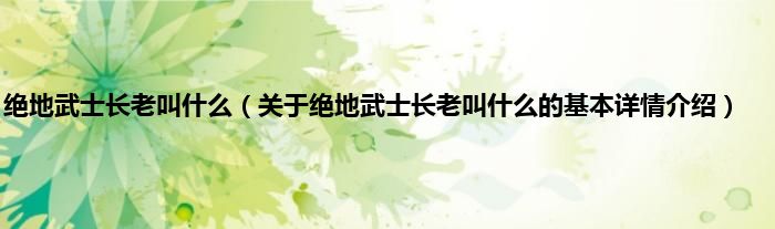 绝地武士长老叫什么(关于绝地武士长老叫什么的基本详情介绍)