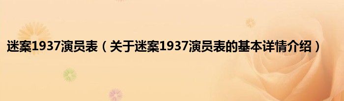 本文关于迷案1937演员表的基本详情介绍就讲解完毕,希望对大家有所帮助。