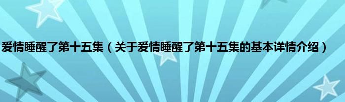 本文关于爱情睡醒了第十五集的基本详情介绍就讲解完毕,希望对大家有所帮助。