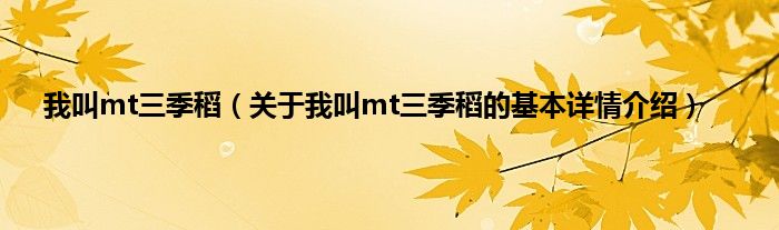 本文关于我叫mt三季稻的基本详情介绍就讲解完毕,希望对大家有所帮助。