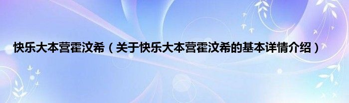 大家好我是小蝌蚪,快乐大本营霍汶希,关于快乐大本营霍汶希的基本详情介绍很多人还不知道,那么现在让我们一起来看看吧!