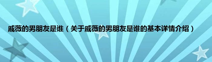 本文关于戚薇的男朋友是谁的基本详情介绍就讲解完毕,希望对大家有所帮助。