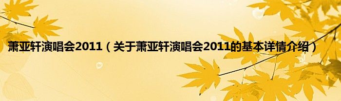 本文关于萧亚轩演唱会2011的基本详情介绍就讲解完毕,希望对大家有所帮助。
